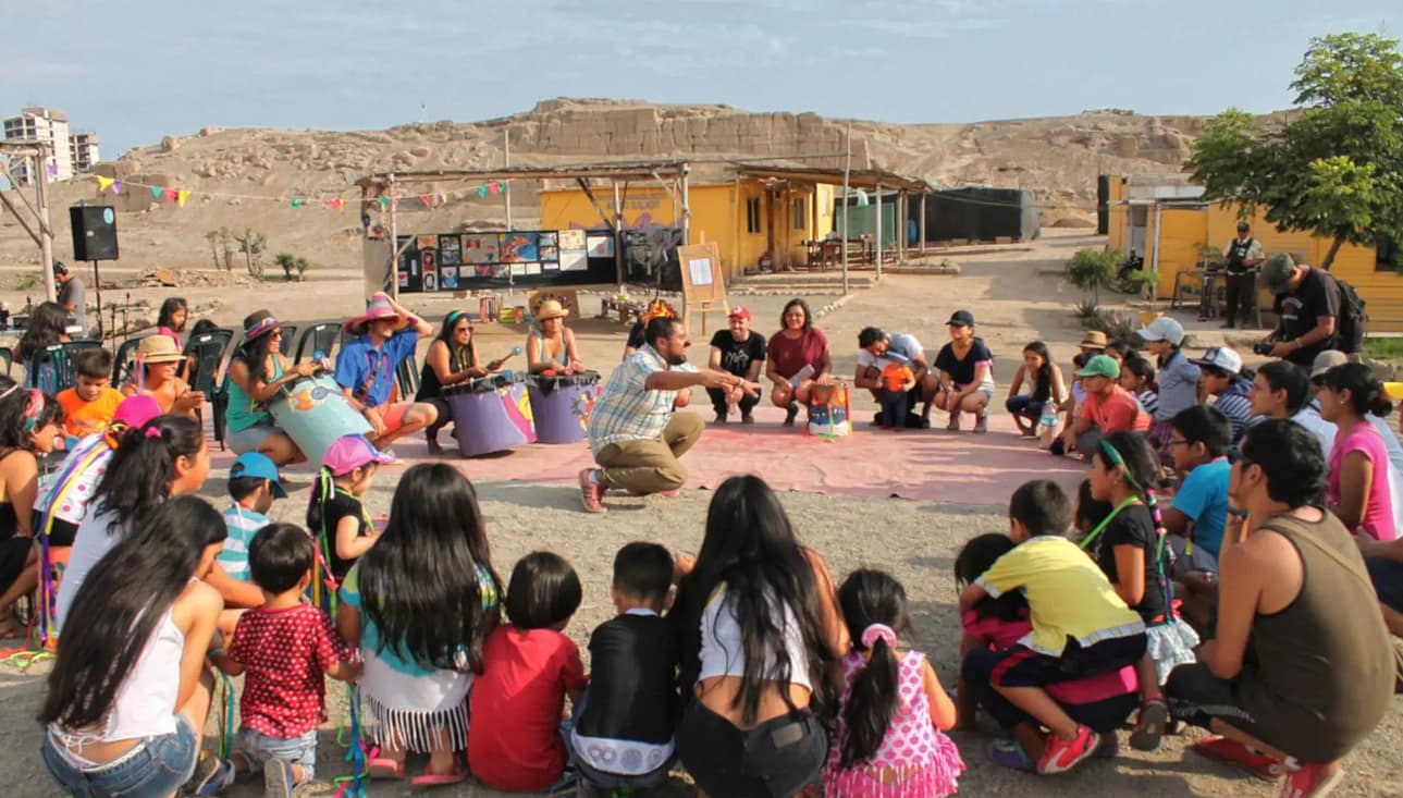 Es con el que iniciamos la aventura de COMUNESPACIO (2013), en el complejo arqueológico Mateo Salado y los barrios colindantes en los distritos de Cercado de Lima, Breña y Pueblo Libre. Mediante talleres de arte, juego, acciones en el espacio público y festivales aprendemos sobre el pasado y reflexionamos sobre el presente para construir un mejor futuro. Los pilares son el aprendizaje horizontal, el respeto y la solidaridad entre niñxs, adolescentes y sus familias.