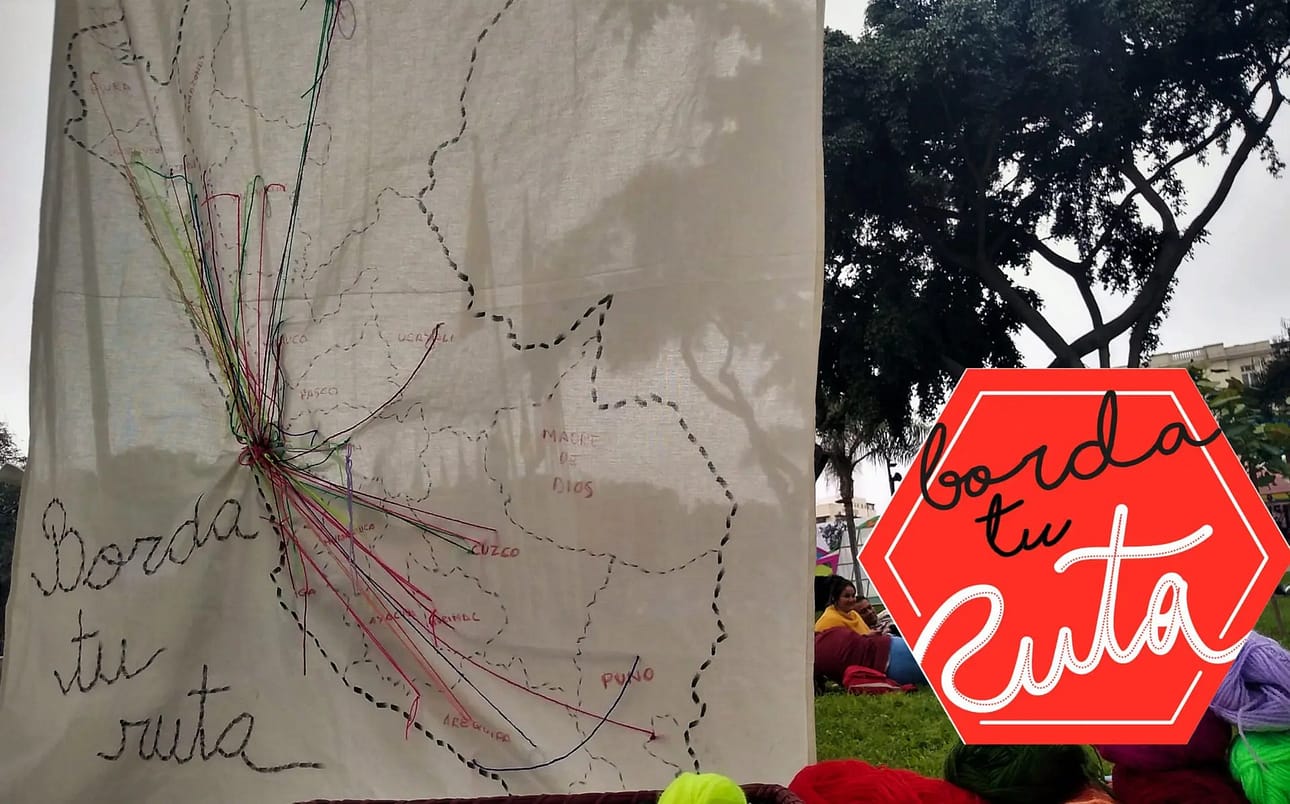 Es una instalación de un mapa del Perú o de Latinoamérica que nos permite invitar a las personas que transitan en el espacio público a que cuenten sus historias de migración o la de sus familias, por medio del bordado de su ruta sobre el mapa y una pequeña narración escrita, para evidenciar y compartir las transformaciones producidas por las migraciones y comprender que nuestros territorios están habitados por “todas las sangres”.