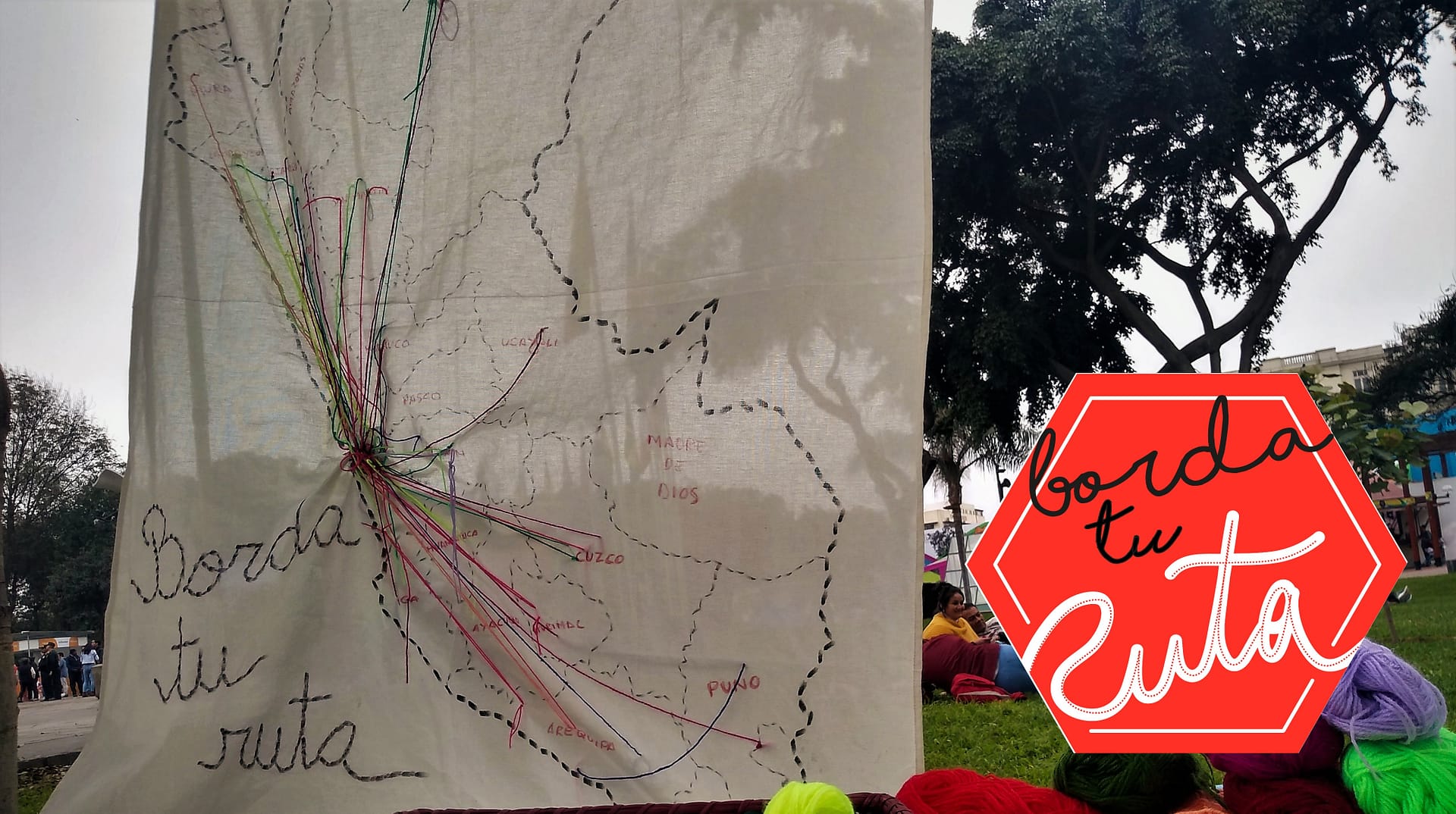 Borda tu Ruta es una instalación de un mapa del Perú o de Latinoamérica que nos permite invitar a las personas que transitan en el espacio público a que cuenten sus historias de migración o la de sus familias, por medio del bordado de su ruta sobre el mapa y una pequeña narración escrita, para evidenciar y compartir las transformaciones producidas por las migraciones y comprender que nuestros territorios están habitados por “todas las sangres”.